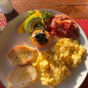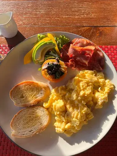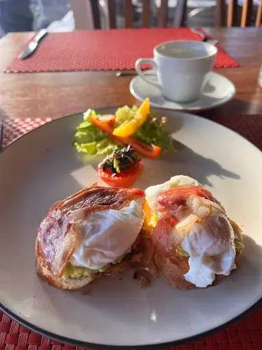 Sourdough, smash avocado, scramble egg, grilled tomato and simple salad.