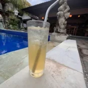 Oats breakfast mixed with fresh milk, apple juice, yogurt, honey, top with fresh strawberry, banana and granola.